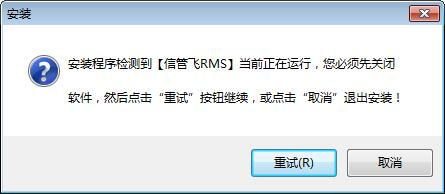 (2)如果运行安装程序后提示如下信息,则表示您正在运行客户端程序,先退出程序,然后点“重试”按钮即可继续安装。