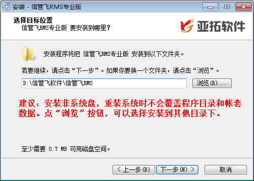可选择安装路径,建议安装到非系统盘,这样重装系统时数据不会被覆盖,方便恢复软件,点“浏览”按钮可选择安装到其他目录。