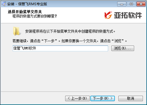 可选择开始菜单程序组的名称,默认即可,不需要修改。