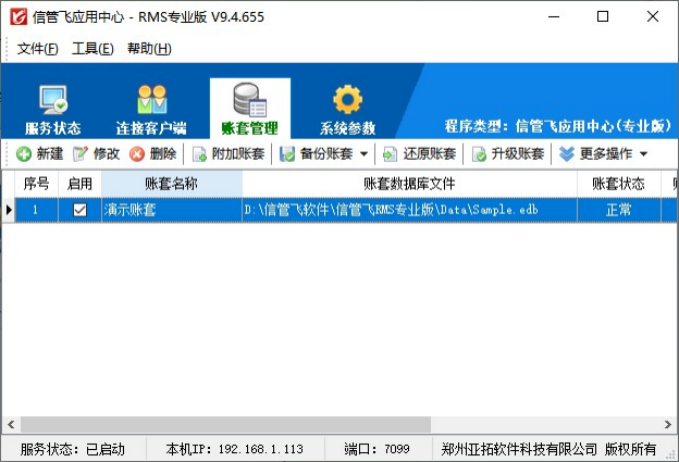 账套即账套数据库,这是一个从会计业务引申出来的概念,账套数据库中存储业务数据。使用软件前建议新增加一个账套,用于重新录入和管理数据。本软件的账套是集中在主机电脑上的应用中心程序上进行的。