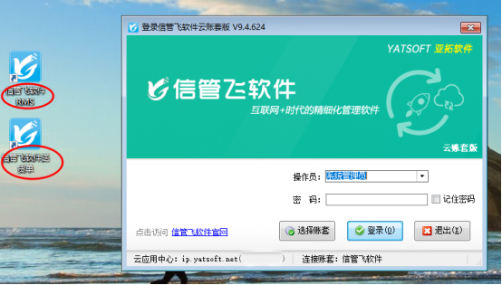 分别打开客户端程序,点击选择账套,分别输入各自通行证账号进行登录软件。系统会自动记忆第一次录入的账号和密码,下次登录不同软件直接选择桌面图标打开登录。