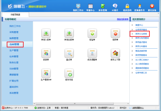 信管飞软件:解锁库存分仓明细查询,高效管理新体验