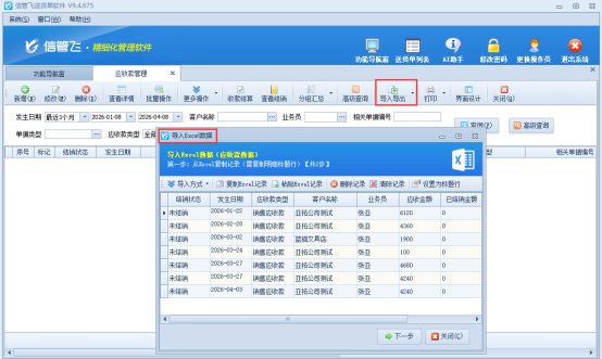 在企业日常经营中,使用信管飞送货单软件前,若存在历史客户欠款需要录入系统,批量导入功能可大幅提升工作效率、减少手动录入误差。以下为您详细演示应收款批量导入的完整操作流程,步骤清晰、简单易懂,助力您快速完成数据整理与导入。