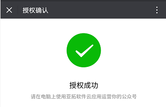 在手机微信上点击“授权”后,会弹出一个授权成功界面。如下图所示: