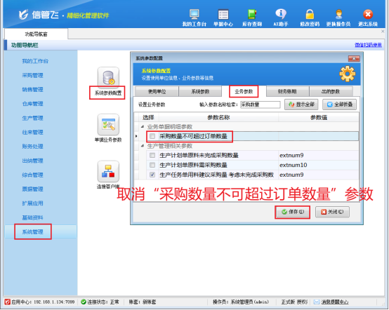 在采购业务里,不少客户会先按需求开采购订单,采购人员再依单采购入库。但实际采购时,常出现采购数量大于订单数量的情况,当出现这种情况后,部分客户在进行开单时,会因系统限制,提示采购数量超限而无法保存单据。别担心,信管飞RMS软件能轻松化解这一难题! 简单设置,开启灵活采购 &nbs